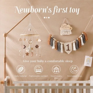 Baby Wooden Crib Mobile Bed Bell Hanging Rattle Toy Newborn Music Box Bed Bell Hanging Toys Holder Bracket Infant Crib Baby Gift
